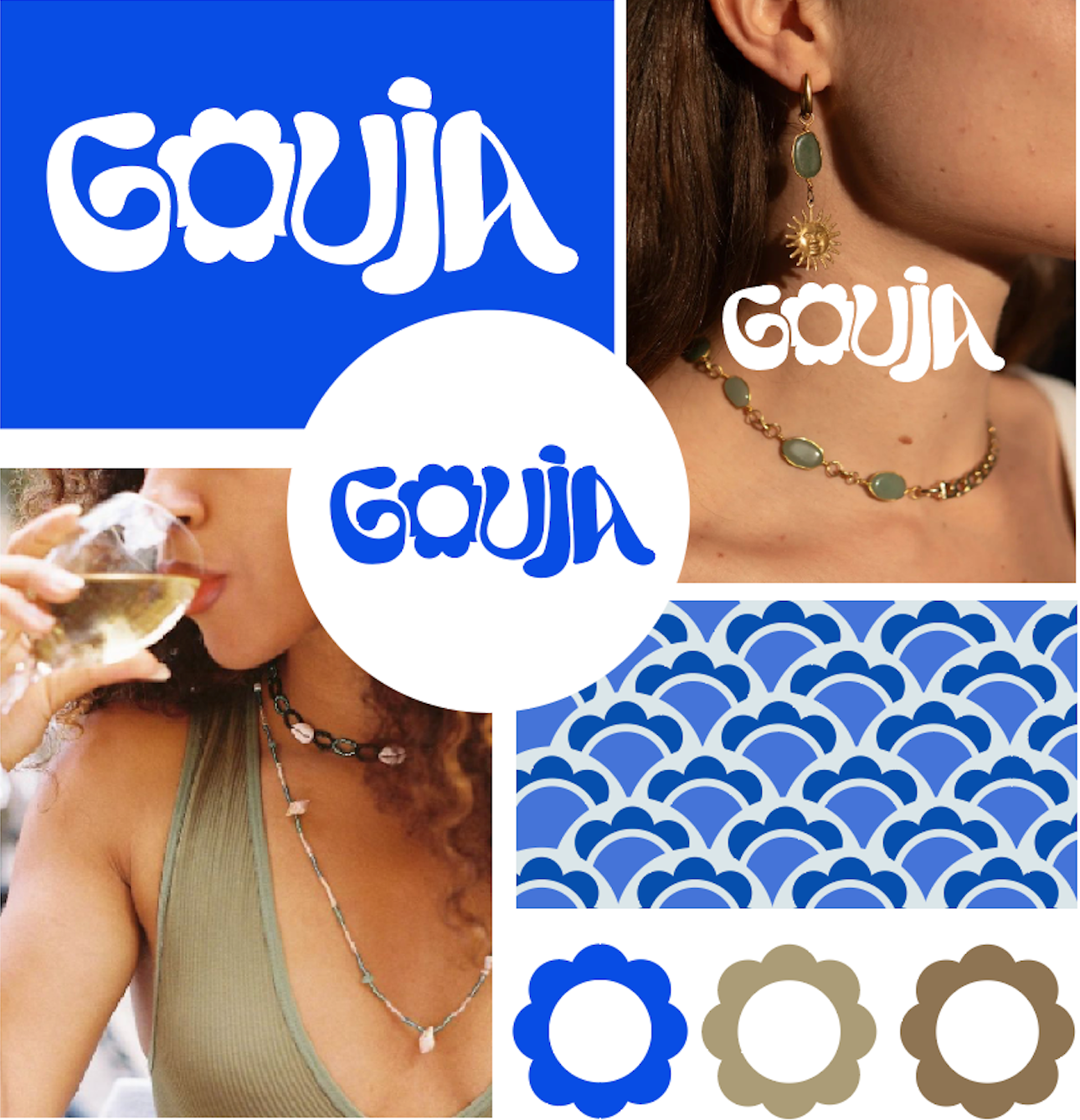 Réalisation d’un logo pour Gouja, une marque dédiée à la revalorisation d’anciens bijoux. Ce projet, porté par Margot et Mathilde, met en avant un savoir-faire artisanal où chaque pièce est créée à la main avec soin et passion. Le logo a été conçu pour s’adapter harmonieusement à tous les supports de communication, reflétant l’authenticité et l’élégance de la marque.